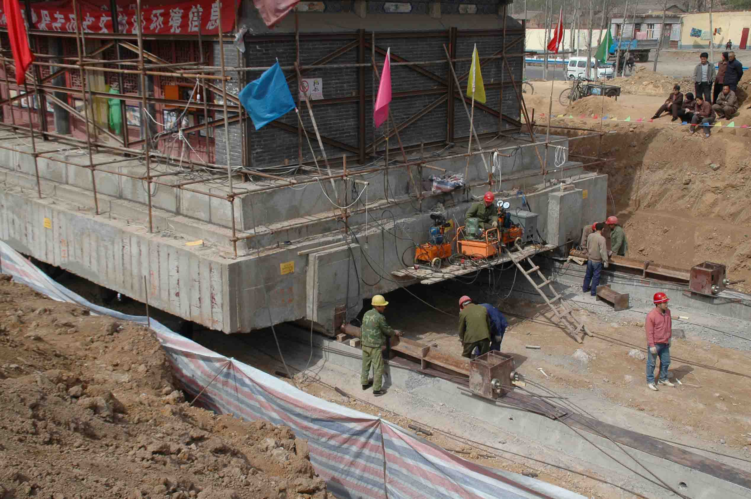 對既有建筑物進行整體移位和頂升是建筑領域新興的一門技術,它涉及工程檢測、地基處理、工程加固等多個學科,整體移位與頂升對舊城改造、文物保護、環境保護具有十分重要的意義。自1999年從對欒城縣鑫都大廈整體平移起步,開始了建筑物整體移位技術的鉆研和摸索。經過數十年的奮斗歷程,我院在建筑物整體移位方面積累了大量經驗,我院先后完成地勘局辦公樓、石家莊女子監獄、河南慈源寺建筑群整體轉向90°并平移470米等建筑移位工程。